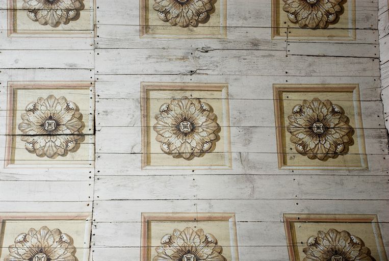 Chapelle, plafond lambrissé et peint, détailImmatriculation