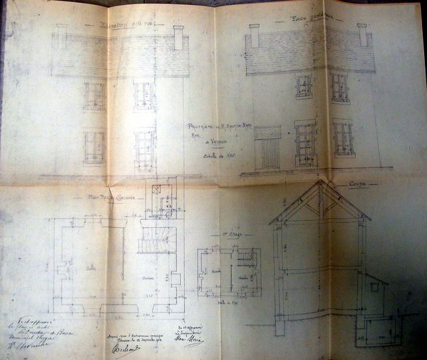 Plan et élévation de la maison Morice, 15 septembre 1913. AM Vannes 5I162.Immatriculation