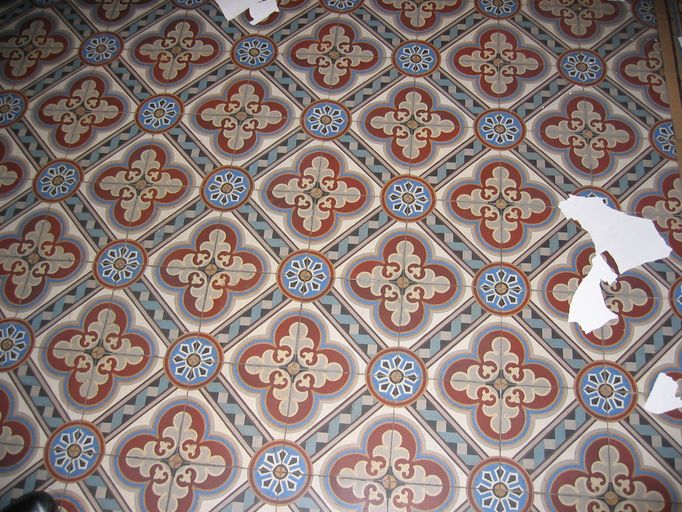 Carreaux de ciment du vestibule d'entrée.Immatriculation