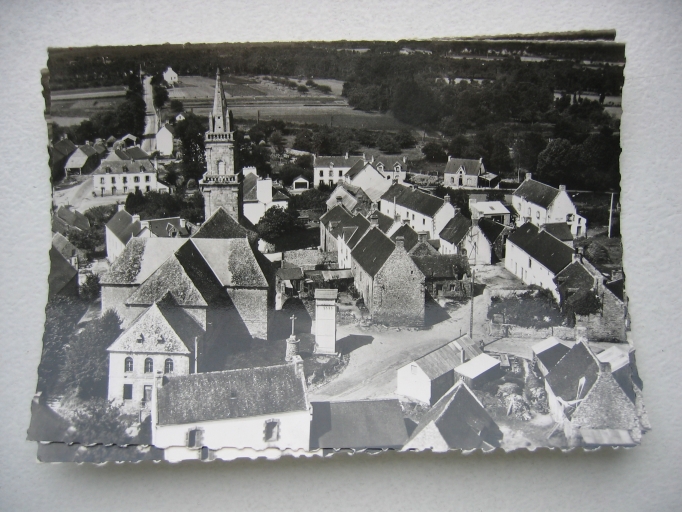 Bourg, vue aérienne est. Carte postale Lapie, vers 1950. AD Morbihan, 5 Fi.Immatriculation