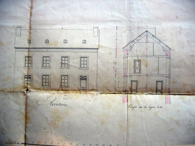 Elévation et coupe, par Halouis, 1853. AD Morbihan, 2O 161/ 1337.Immatriculation
