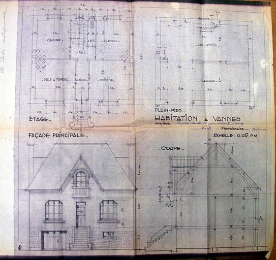 Plan et élévation de la maison par Santin entrepreneur, non datés. AM Vannes 5I162.Immatriculation