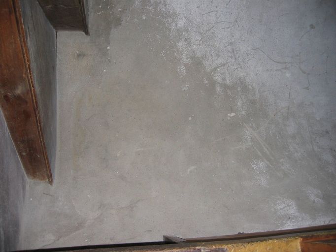 Emplacement de l'escalier en vis disparu : mur incurvé.Immatriculation