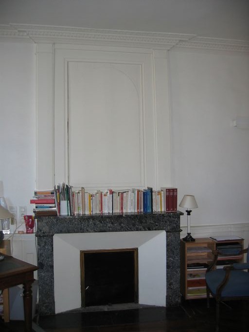 Premier étage, pièce sur rue : cheminée et trumeau.Immatriculation