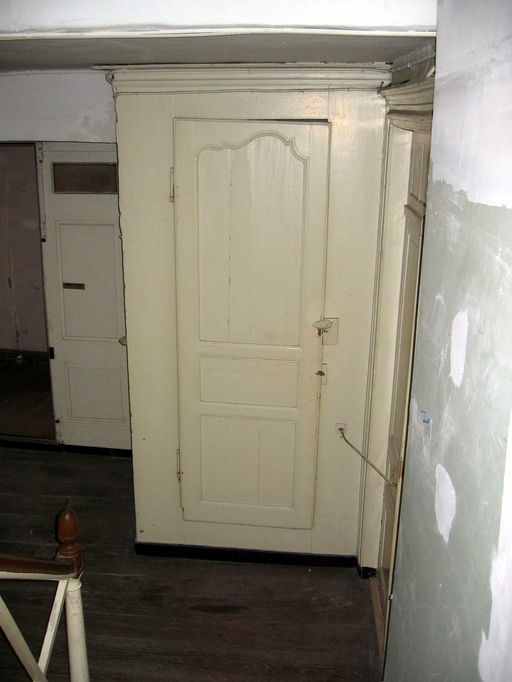 Cage d'escalier, rez-de-chaussée, porte de placard.Immatriculation
