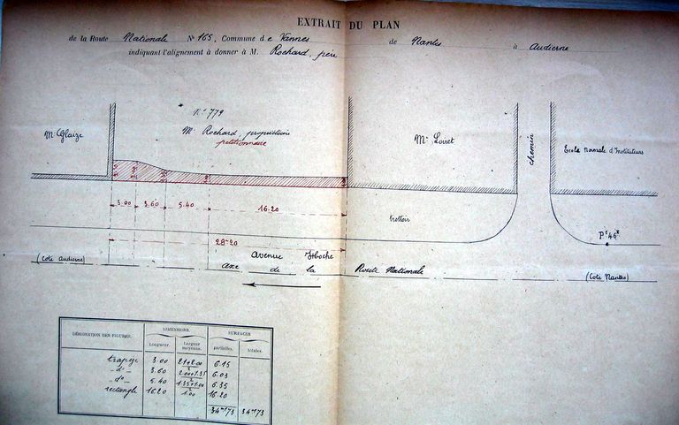 Demande de Jules Rochard père d´un alignement pour le terrain 779 bis, 3 mars 1925. AD Morbihan S 717.Immatriculation