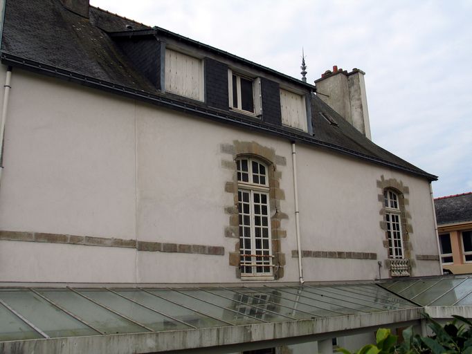 Elévation nord, vue vers l'ouest, détail des ouvertures de l'étage.Immatriculation