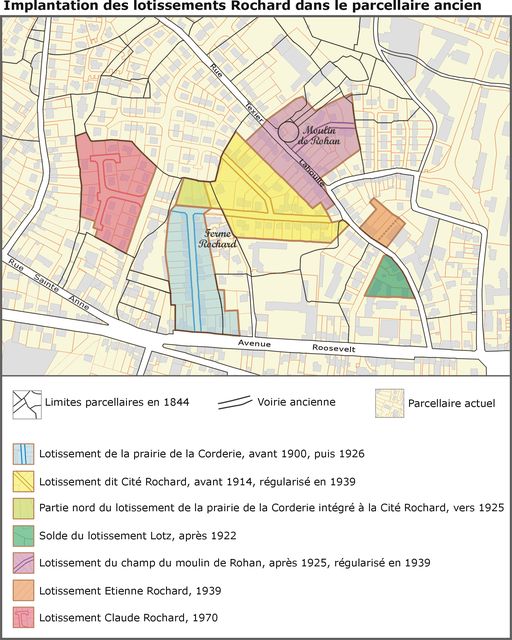 Implantation des lotissements Rochard dans le parcellaire ancien.Immatriculation