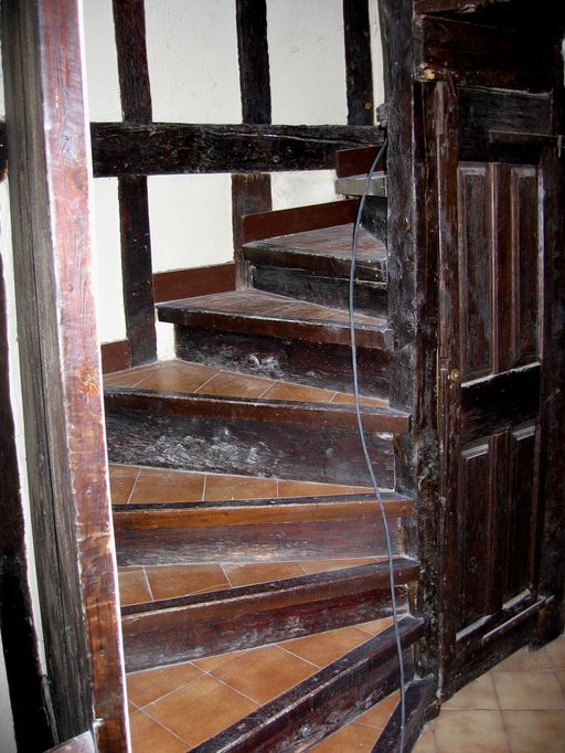 Escalier en vis desservant le niveau du comble.Immatriculation