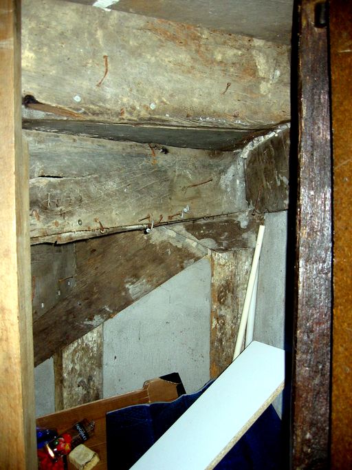 Escalier en vis desservant le niveau du comble, revers des marches.Immatriculation