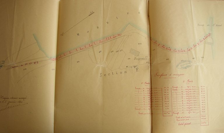 Plan des Ponts-et-Chaussées de 1894 sur lequel figure la digue-route du passage de St-ArmelImmatriculation