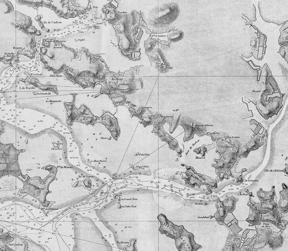 Extrait de 'Carte du Morbihan', Paris : Dépôt des cartes et plans de la Marine, 1872, édition d'octobre 1929, n° 3165.