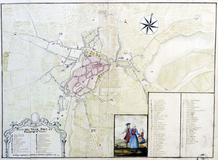 Description historique... du président de Robien : plan de Vannes, milieu du 18e siècle. Bibliothèque de Rennes-Métropole.Immatriculation