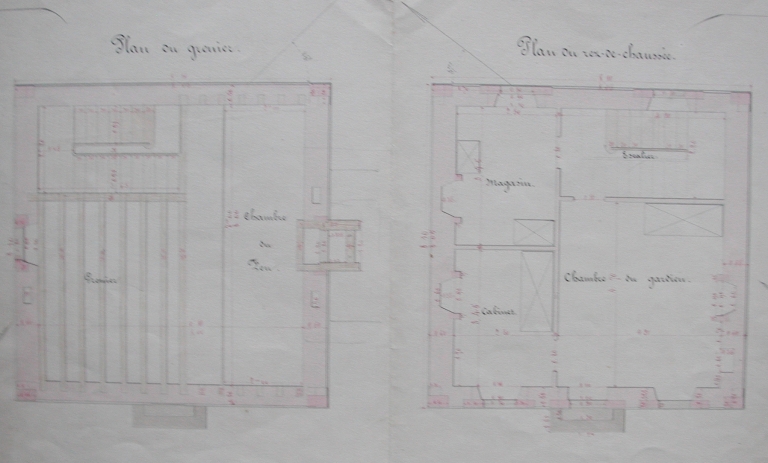 Plan du grenier du rdc. de la maison-phare, 1857 (AD 22)Immatriculation