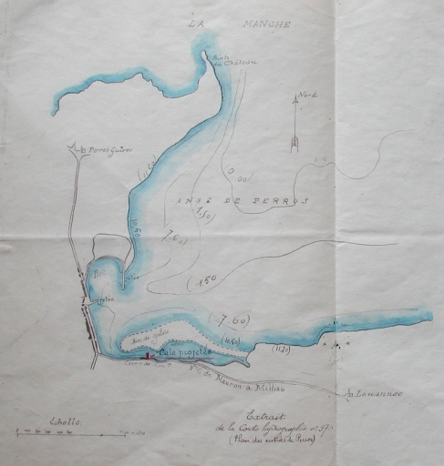 Plan du site et emplacement de la cale projetée, 1912, extrait de la carte hydrographique (AD 22)Immatriculation