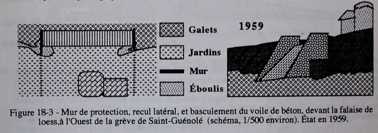 Dessin : mur de protection devant la falaise de loess, à l'ouest de la grève de St-Guénolé en 1959 (J.P. Pinot, SMVM, 1993)Immatriculation