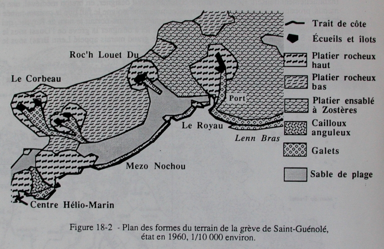 Dessin : plan des formes du terrain de la grève de St-Guénolé, état en 1960 (J.P. Pinot, SMVM, 1993)Immatriculation