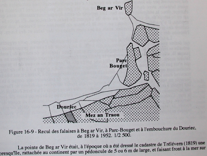 Dessin : recul des falaises à Beg ar Vir, à Parc-Bouget et à l'embouchure du Douriec de 1819 à 1952 (Pinot, SMVM, 1993)Immatriculation