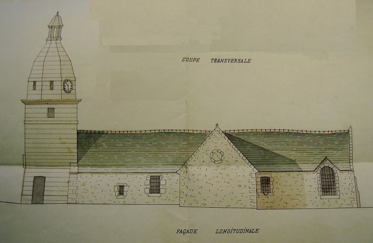 Coupe longitudinale de l'ancienne église paroissiale Saint-Sieu, par l'architecte F. Hédou, le 9 octobre 1899 (AD 22)Immatriculation