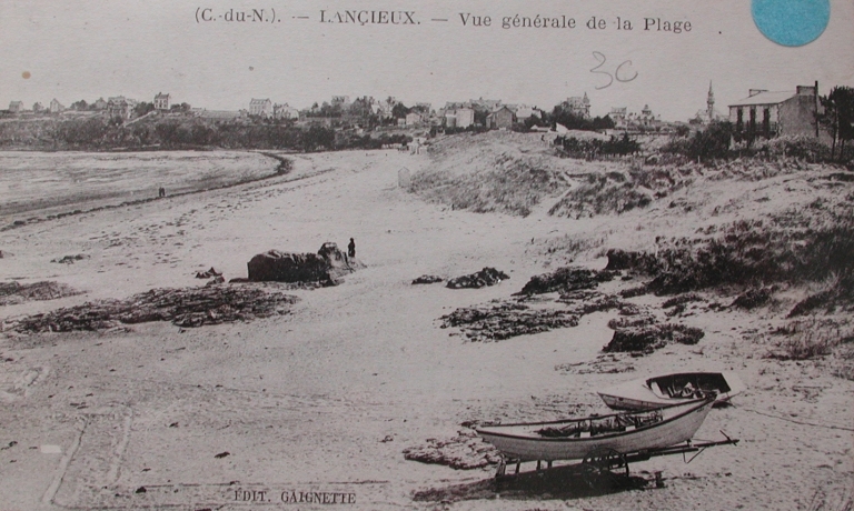 Front de mer de Saint-Sieu : dune de la plage vers 1920, très érodée depuis la description faite en 1872 (collection particulière)Immatriculation