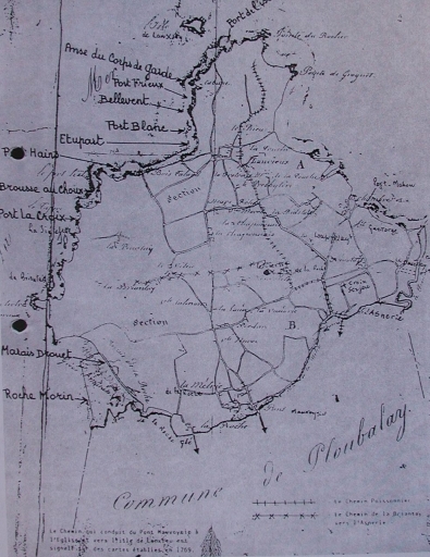 Carte du littoral de Lancieux par Charles Mazin, 1756, annotée par Marie Dagorne (collection particulière)Immatriculation