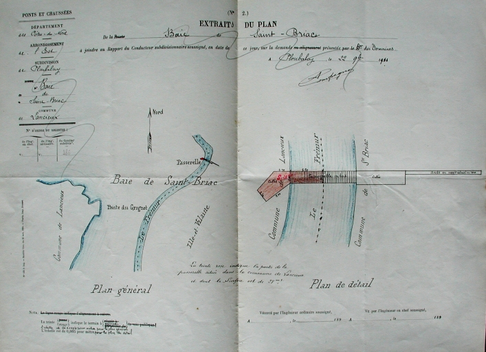 Plan : projet de remplacement de l'ancienne passerelle en 1911 (AD 22)Immatriculation
