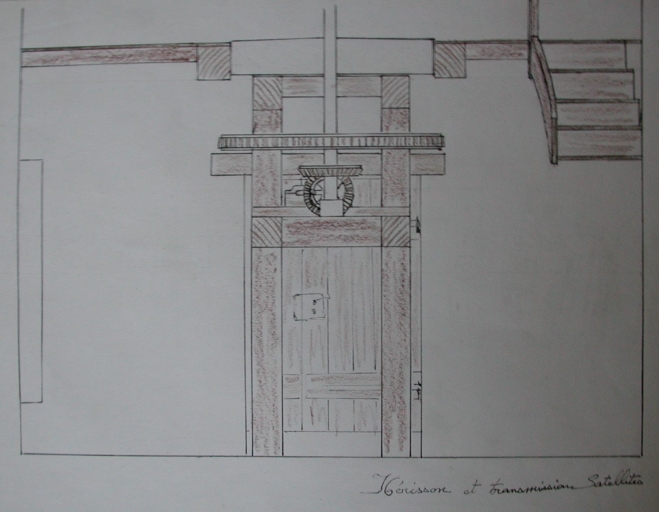 Hérisson et transmissions satellites, avec l'arrivée de l'escalier au 1er étage (dessin de Jean Peillet)Immatriculation