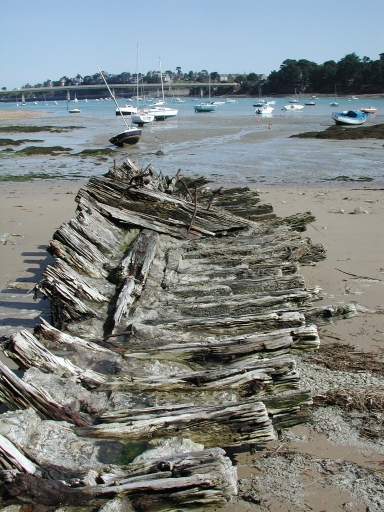 Epave de bateau du type gabarre sur la rive gauche du Frémur (plage de Rieul), datée de 1958Immatriculation
