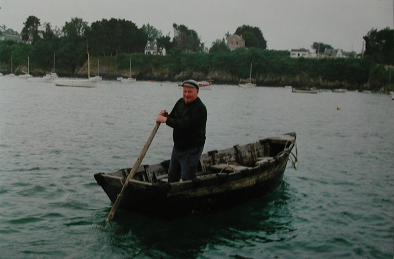 Pierre Aubin à bord d'une annexe charentaise, en 1988 (Roger Goupil, collection particulière)Immatriculation