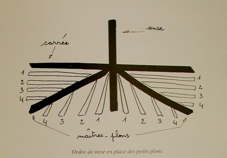 Dessin : ordre de mise en place des petits plons (Jacques Roux, Amis du Vieux St-Jacut, 1995)Immatriculation