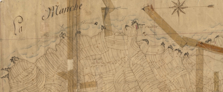 Extrait cadastral, section A, 1827.Extrait de plan cadastral, 1827. AD Côtes-d'Armor : 4 num 1/16, plans cadastraux parcellaires de 1827.