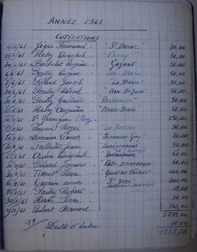Liste nominative des cotisants en 1961 (collection particulière)Immatriculation