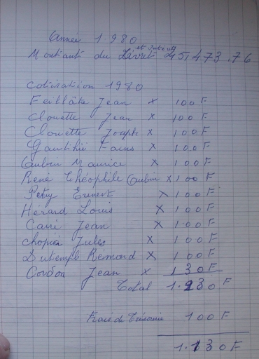 Liste nominative des cotisants en 1980 (collection particulière)Immatriculation