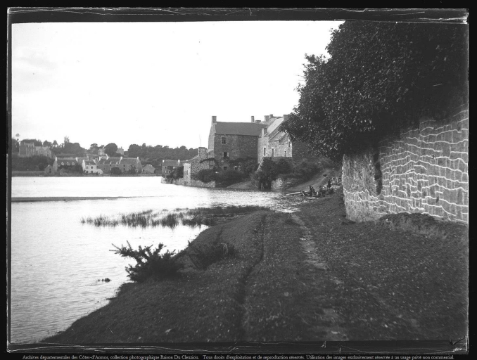 Vue du charroi qui longe l'estuaire, rive droite du Guildo, en amont du port, au début du 20ème siècle (AD 22, Raison du Cleuziou)Immatriculation