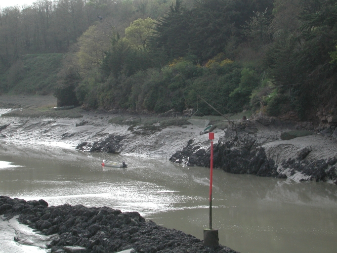 Rencontre entre deux outils de pêche au carrelet en amont de l'ancien pont du Guildo : le bateau civelier et le carrelet fixeImmatriculation