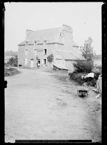 Vue d'une maison caractéristique du quartier du 'vieux Guildo' Poudouvre au début du 20ème siècle : remarquer la maison à 2 étages et les gerbières (AD 22)Immatriculation
