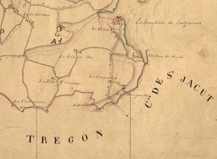 Extrait du cadastre de 1827 : le ruisseau du Bouillon qui dessert la fontaine de Bouillon (AD 22)Immatriculation