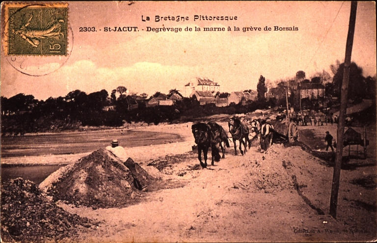 Dégrèvage et transport de la marne de Beaussais avec les attelages, début 20ème siècle (carte postale, collection particulière)Immatriculation