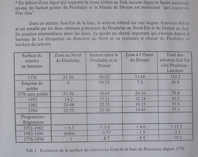 Dans : 'Le polder de Ploubalay, étude hydro-sédimentaire, botanique et ornithologique du site. Projet de réhabilitation et d'aménagement' / Bonnot-Courtois C. ; Levasseur J. ; Mahé R., St-Brieuc : Conservatoire de l'Espace Littoral, Association 'Rivages', juillet 1999.
