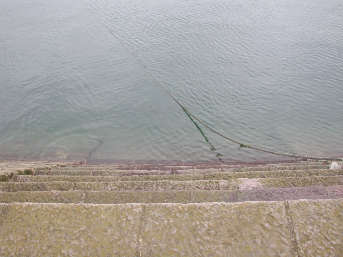 Vue de détail de l'escalier en pierre de taille qui dessert le mur de quai SudImmatriculation