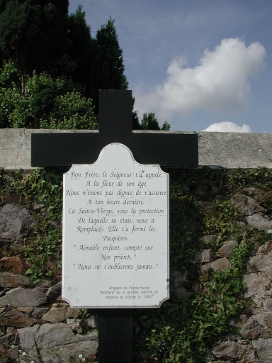 Vue du 'Mémoire', rapporté de la chapelle de Perros-Hamon : naufrage de la goélette Mathilde, 1867, apposé sur une croix en boisImmatriculation