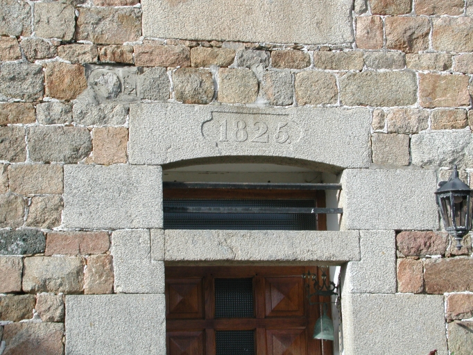 Vue de détail de la porte d'entrée à traverse d'imposte, portant la date de 1825Immatriculation