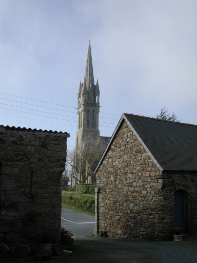Vue de l'entrée de la cour fermée de Kerhamon donnant sur l'égliseImmatriculation