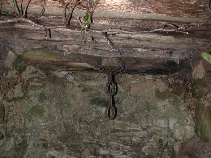 Intérieur du puits : remarquer la maçonnerie en moellons de schiste et la chaîne fixée à la charpenteImmatriculation