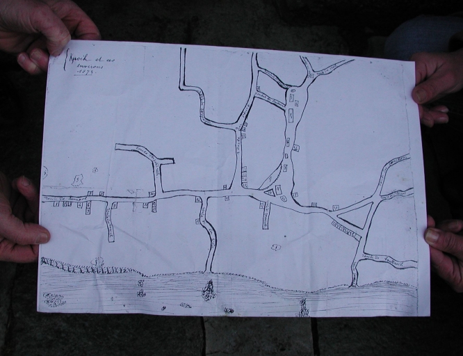 Reconstitution du plan du village de Kerroc'h en 1873 par Maurice Danzanvilliers (collection particulière)Immatriculation