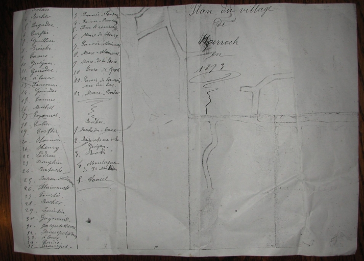Liste nominative reconstituée des habitants du village de Kerroc'h en 1873 par Maurice Danzanvilliers (collection particulière)Immatriculation