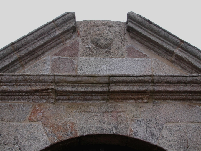 Vue de détail du fronton triangulaire, portant la date de 1719 et les armoiries de Cillart de la VilleneuveImmatriculation