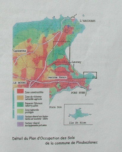 Détail du POS de la commune de Ploubazlanec en 1994, avec la localisation des parcelles de la réserve Paule Lapicque (Mairie de Ploubazlanec)Immatriculation
