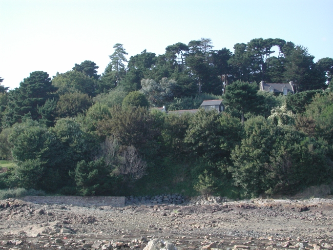 Vue d'une partie du bâti littoral en flanc de falaise du plateau de Launay et de l'Arcouest : 'Sorbonne Plage'Immatriculation