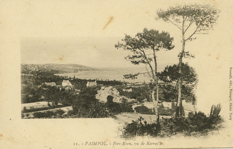 Vue du front de mer de Kerroc'h à Pors Even, vers 1903 (AD 22, carte postale, 16 Fi)Immatriculation